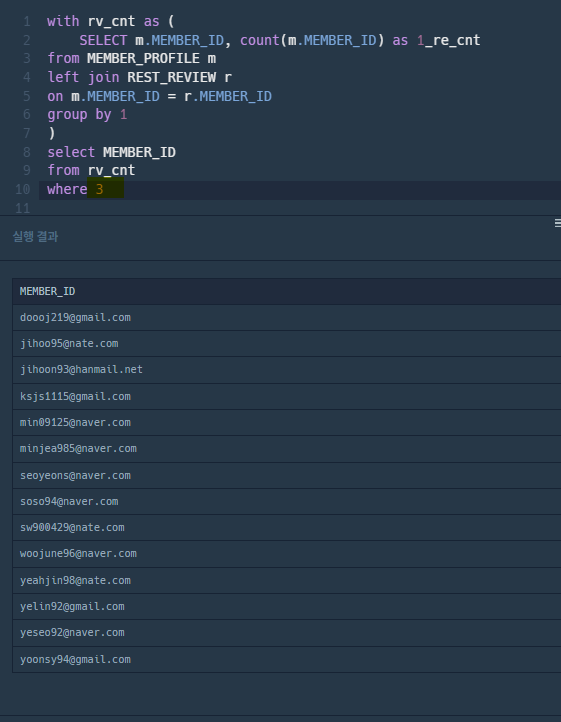 내 목적은 cnt가 3인 아이디 3개를 추리는 것이었는데 어째서인지 re_cnt에 있는 아이디 전부가 나오고말았다