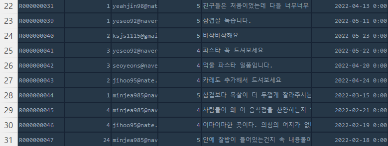 그 후엔 간단히 MEMBER_PROFILE 테이블과 REST_REVIEW테이블을 조인후,